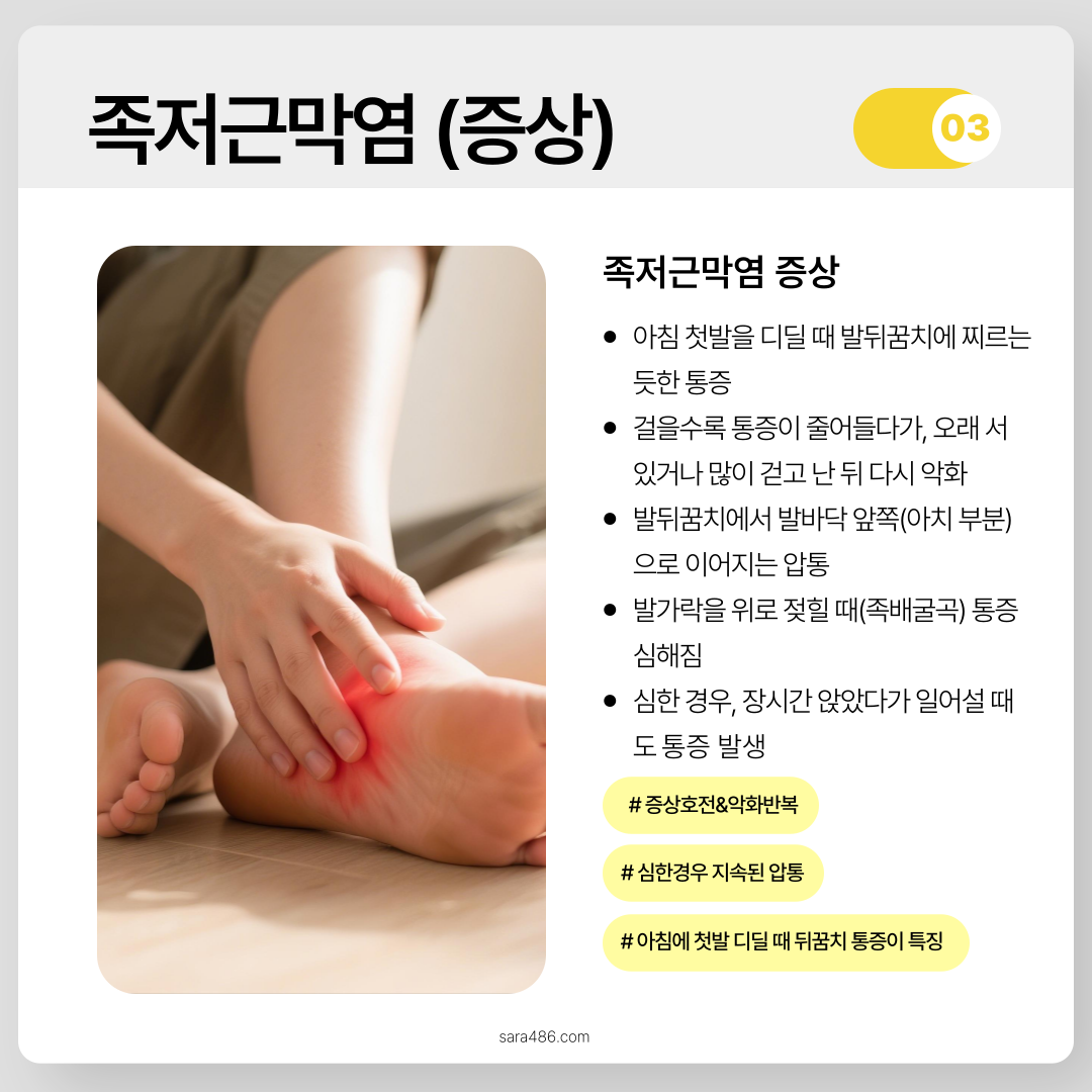 - 아침 첫 발 디딜 때 심한 통증 (대표적 특징)